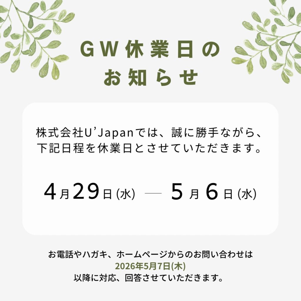 株式会社U‘s Japanでは誠に勝手ながら、